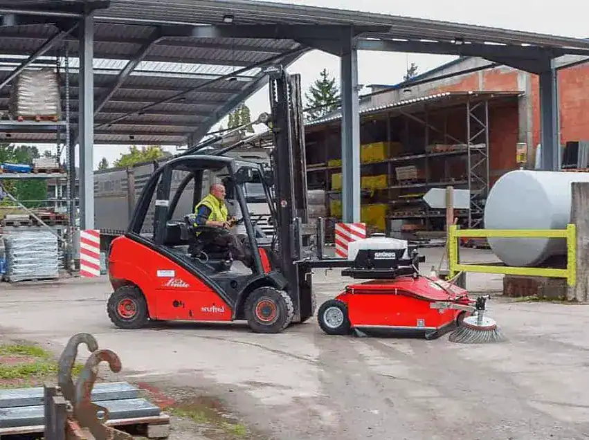 Ganz gleich, ob Sie eine Kehrmaschine für Ihren Gabelstapler, Traktoren oder Radlader benötigen – GRÜNIG Anbaukehrmaschinen lassen sich blitzschnell an unterschiedliche Trägerfahrzeuge ankoppeln.
