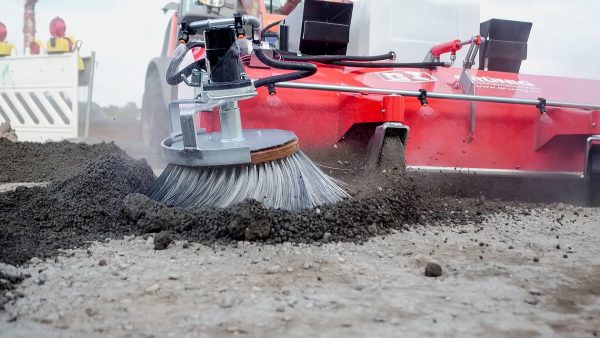 Warum gerade GRÜNIG? Weil eine Kehrmaschine von GRÜNIG mehr schafft als der Durchschnitt und ihr volles Potenzial da deutlich macht, wo andere Fabrikate aufgeben. Äußerst gründlich und effizient nimmt sie es mit jeder Art von Kehrgut auf, ob grob oder feinkörnig, und macht dank der speziellen Reinigungstechnik, die ohne Filter und Absaugung auskommt, auch vor nassem oder schlammigem Kehrgut nicht Halt – ein echter Vorteil gegenüber einer Kehrsaugmaschine. Selbst hartnäckigste Verschmutzungen aus Bodenunebenheiten, Ecken, Mauern oder Fassaden werden zuverlässig entfernt. Eine GRÜNIG Kehrmaschine ist daher für den Einsatz im Straßenbau – und natürlich auch im Hochbau sowie Tiefbau – geradezu prädestiniert. Des Weiteren ermöglicht die integrierte Vollkapselung das nahezu staubfreie Reinigen. Die Entsorgung von aufgenommenen Kehrgut kann nach den Reinigungsarbeiten mit dem Hubmast des Trägerfahrzeuges spielend leicht in hohe Müllcontainer entsorgt werden. Sie sehen: Mit einer Kehrmaschine aus dem GRÜNIG ist die professionelle Großflächenreinigung von Baustellen und Betriebsflächen ein Leichtes!