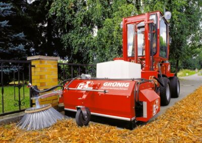 Die Anbau-Kehrmaschinen der GSV-Modellreihe zum Anbau an den Uni-Truck sind ein wahrer Jumbo in ihrer Klasse und konzipiert für den selbstaufnehmenden Einsatz von voluminösem Kehrgut wie Laub und Papier. Arbeitsbreite 1,20 und 1,50 m. Diese extrem leistungsstarke Kehrmaschine arbeitet nach dem Überkopfkehrprinzip was den Füllgrad des Schmutzbehälters nahezu verdoppelt. Die hydraulische Behälterentleerung vereinfacht das Arbeiten.