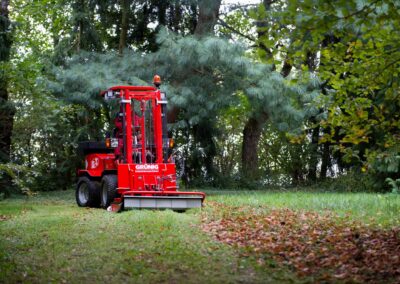 Der geländegängige, wendige Uni-Truck mit dem Schlegelmäher im Anbau erreicht selbst schwer zugängliche Stellen und ist zum Mulchen und Mähen von extensiv genutzten Flächen im Bereich GaLa-Bau und Grünflächenpflege konzipiert. Auch für höhere Grasbestände, Gestrüpp, Schilf und dichte Unkrautverwachsungen ist er bestens geeignet. Die pendelnd gelagerten Spezial-Schlagmesser überzeugen zudem durch ihre Unempfindlichkeit gegen Fremdkörpereinwirkung.